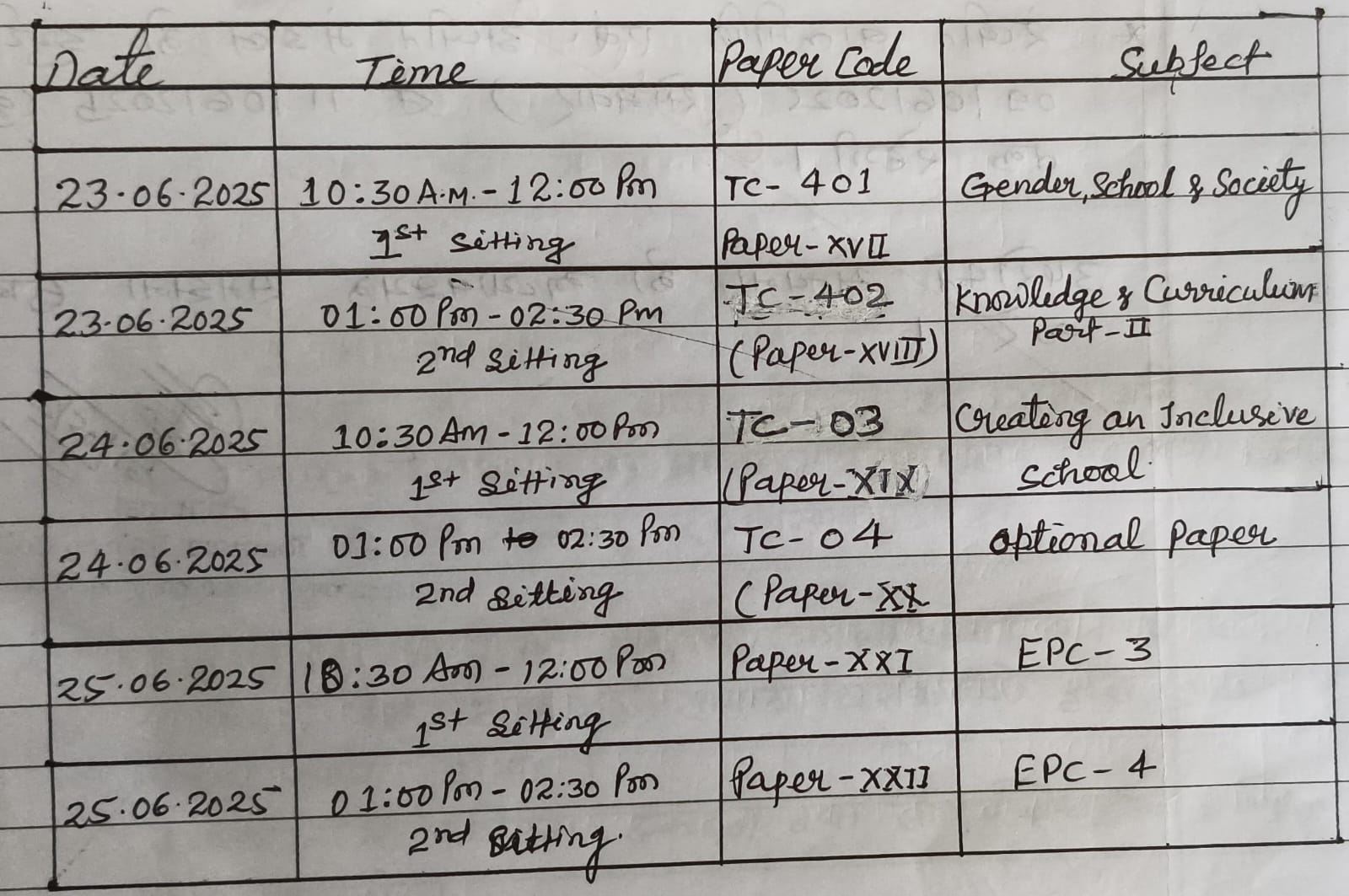 This is to inform all the faculty members, staff and students of B.Ed. session : 2023-25, Sem - IV that the Internal Examination will be conducted as per given schedule :